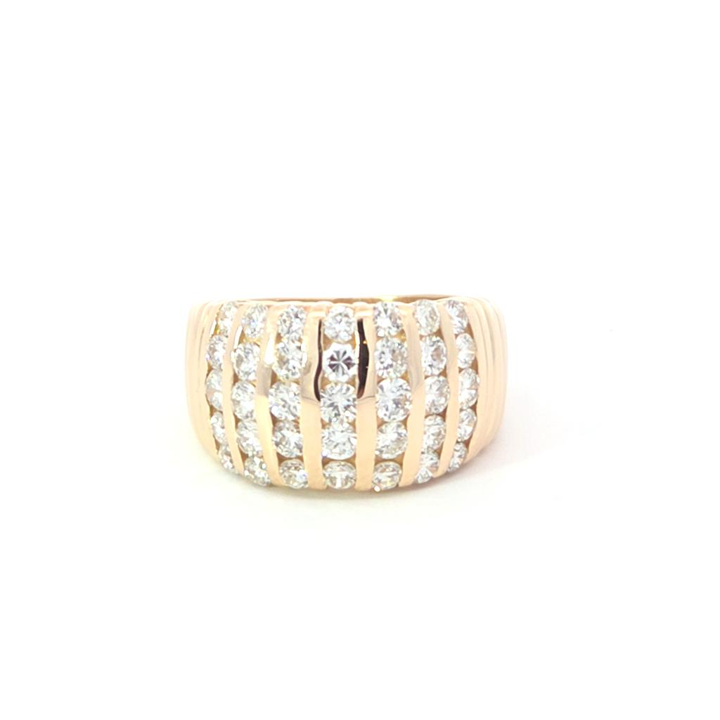 A channel band is beloved for its sleek profile and secure setting. Each diamond nestles within protective gold walls, minimizing snags while maximizing light return across the row of stones. As a result, you get a smooth, modern silhouette that stands up to daily wear. However, what truly sets this ring apart is its substantial 1.75 carat total weight of diamonds, offering a luxurious presence that transitions from casual to formal with ease.