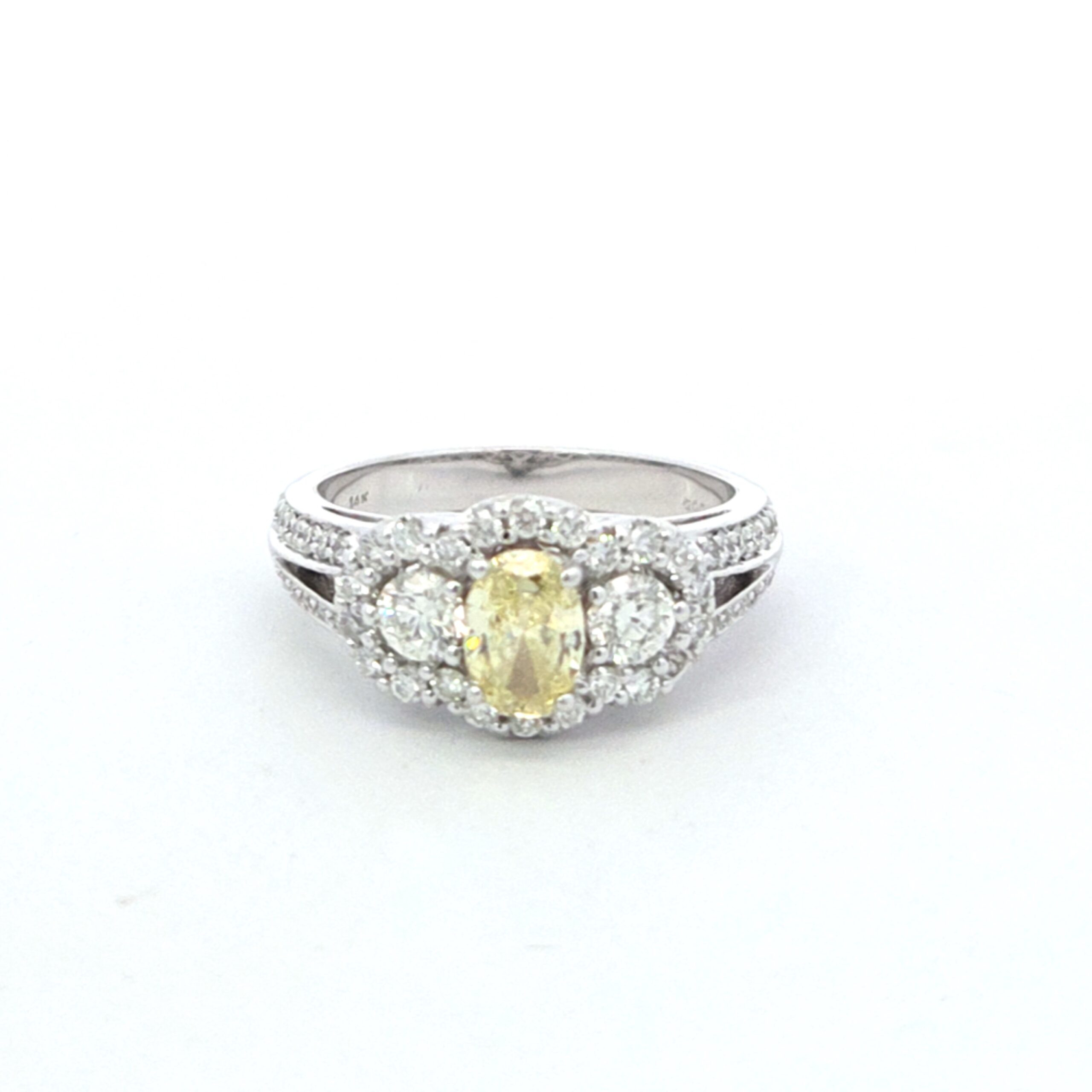 If you are in search of a breathtaking symbol of love, look no further than our exquisite Pre-Owned Halo Engagement Ring featuring a stunning combination of 1.59 carats total weight (ctw) in oval and round diamonds, all elegantly set in 14k white gold. This unique piece exemplifies sophistication while embodying an environmentally friendly choice for the contemporary couple.