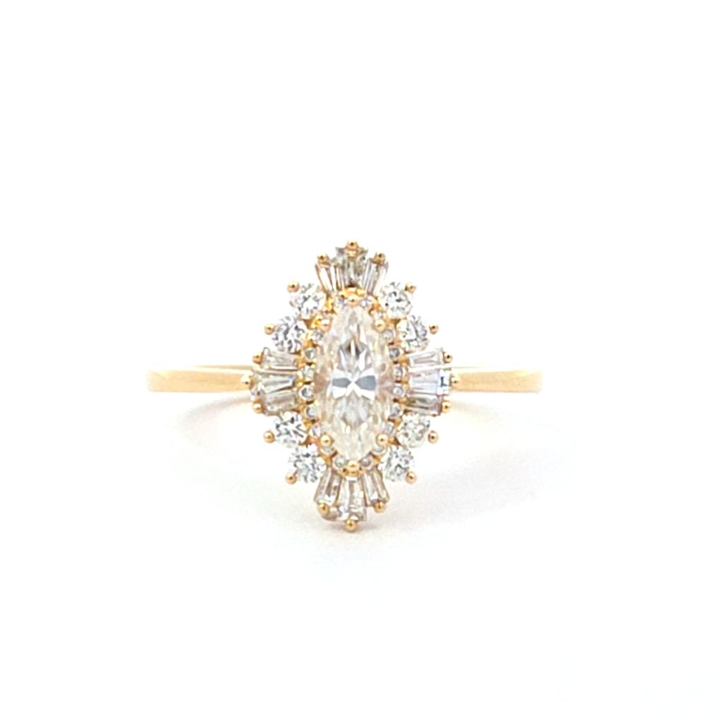 Marquise Moissanite Ballerina Ring, 0.50ctw Natural Diamonds, 14K Yellow Gold