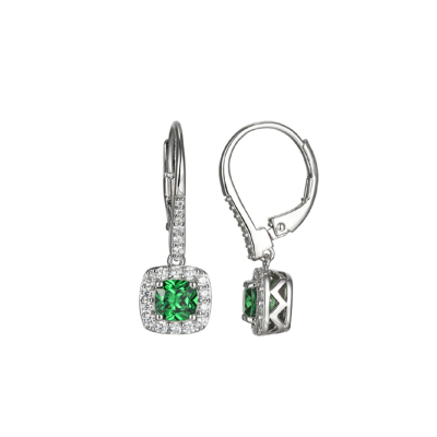 Elevate your style with Radiant Cushion Green & Clear Halo Dangle Earrings in Silver. Perfect for any occasion!