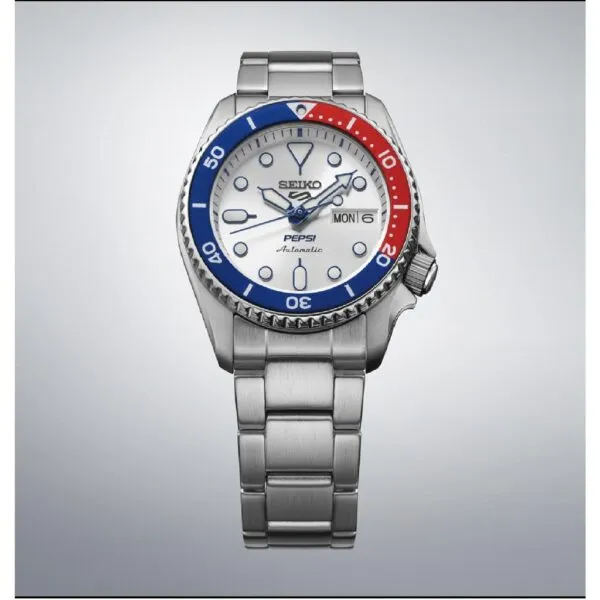 Moreover, whether you’re dressing for a client meeting or a casual day out, this Seiko Pepsi bezel 5 Sports automatic brings effortless polish and everyday readiness.
