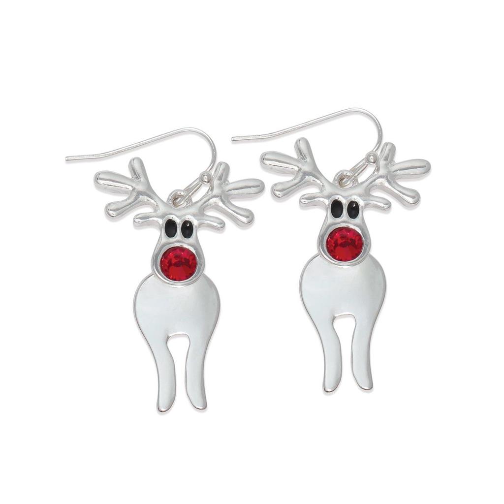 Silver Rudolph Red-Nose Reindeer Dangle Earrings