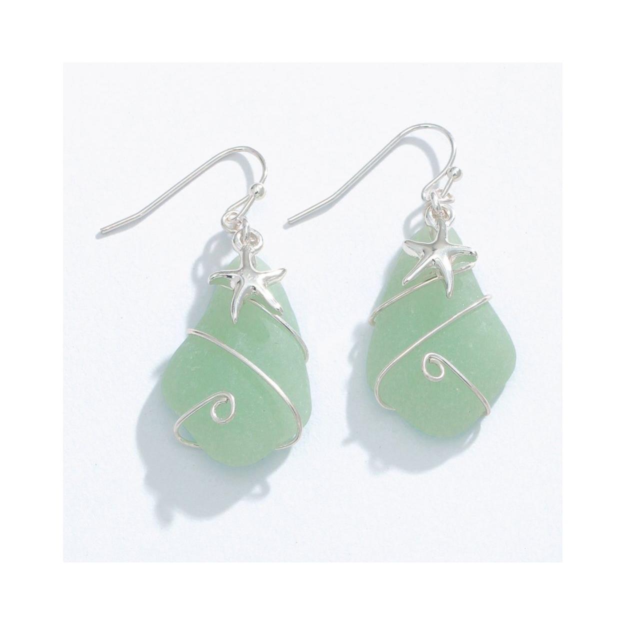 Discover the Enchantment of Silver Starfish Earrings with Aqua Sea Glass Dangles