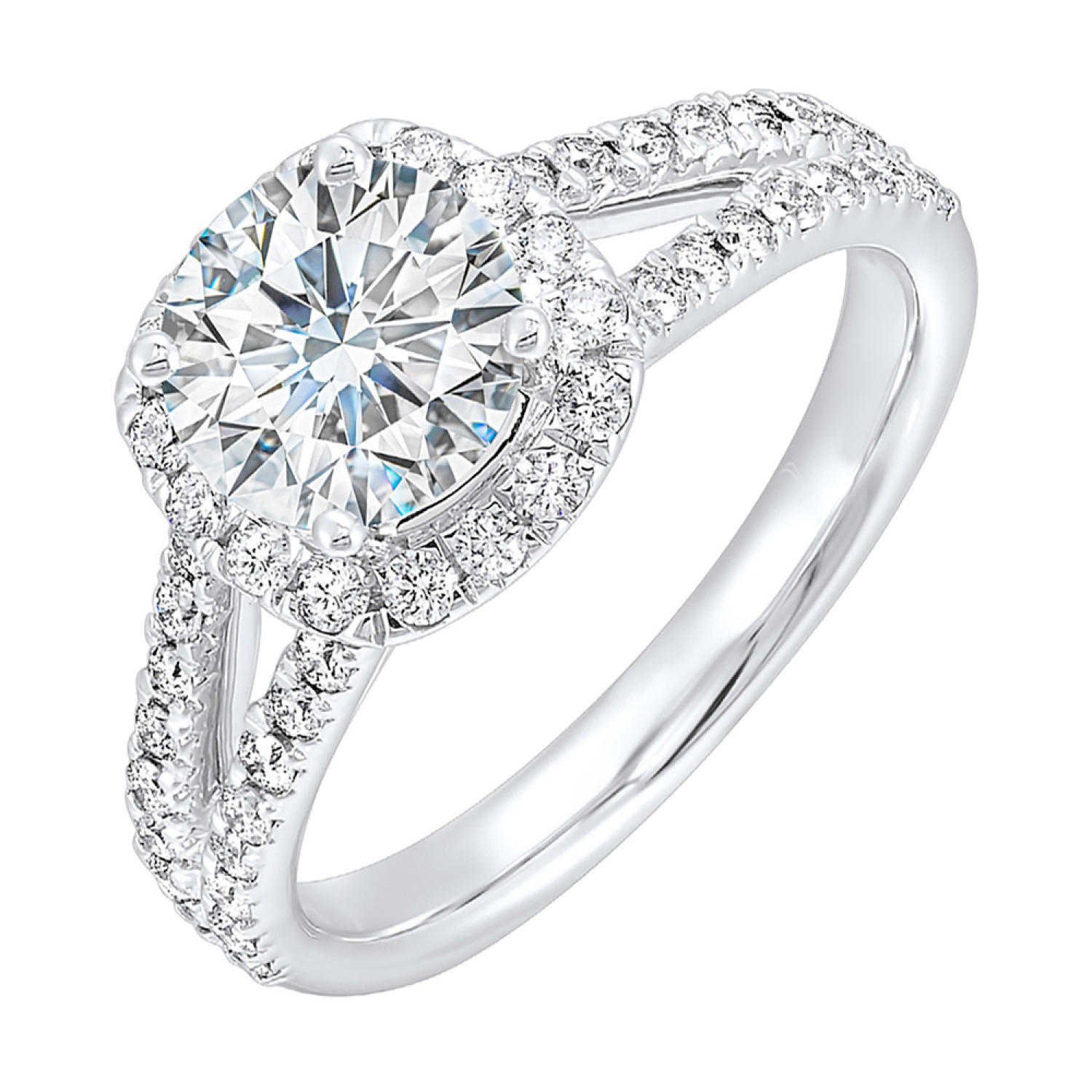 Split Shank Cushion Halo Engagement Ring in 14k White Gold
