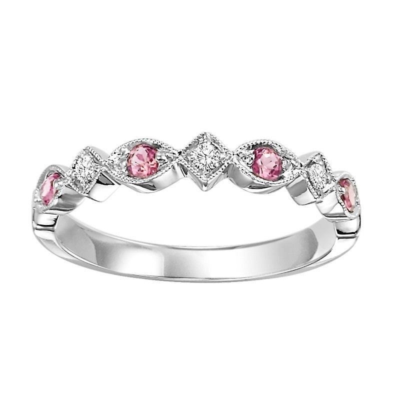 Discover Elegance: Stackable Ring with Pink Tourmaline & Diamonds in 10k White Gold