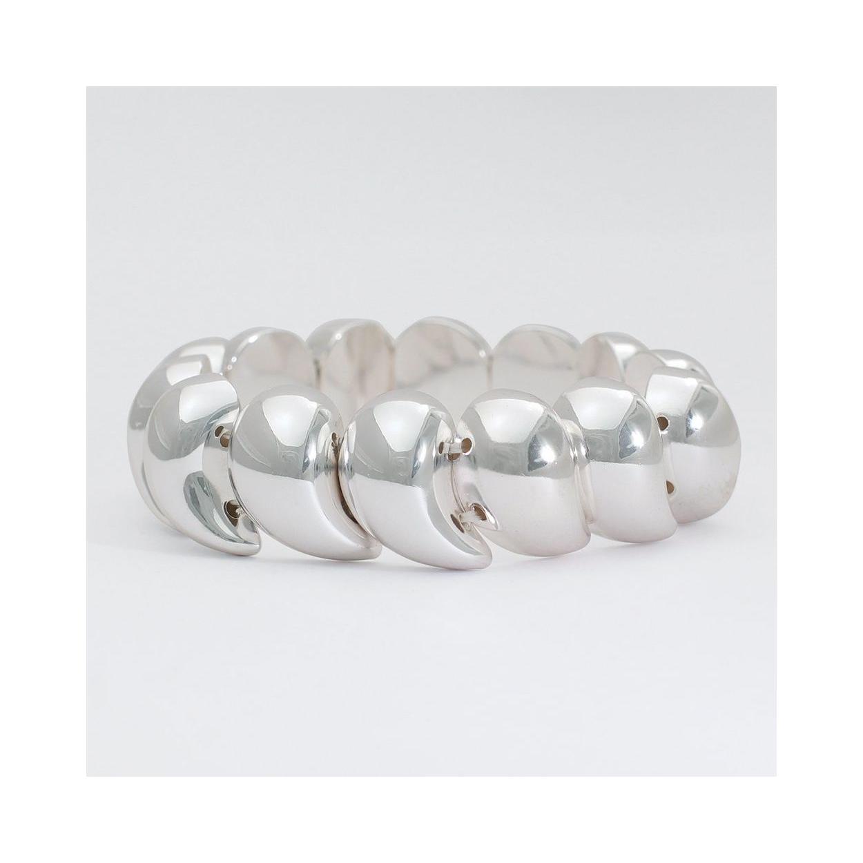 Discover the Chic Elegance of the Stylish Silver Polished Sculpted Link Stretch Bracelet