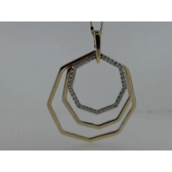 Introducing the Triple Octagon “Web” Pendant, a stunning piece from Hoppe Jewelers that features exquisite craftsmanship and luxurious materials. This pendant showcases a contemporary design, elegantly crafted in 14k two-tone gold and adorned with 1/4 carat total weight (ctw) of shimmering round diamonds. Whether you’re dressing up for a formal event or adding a touch of sophistication to everyday wear, this pendant is the epitome of style.