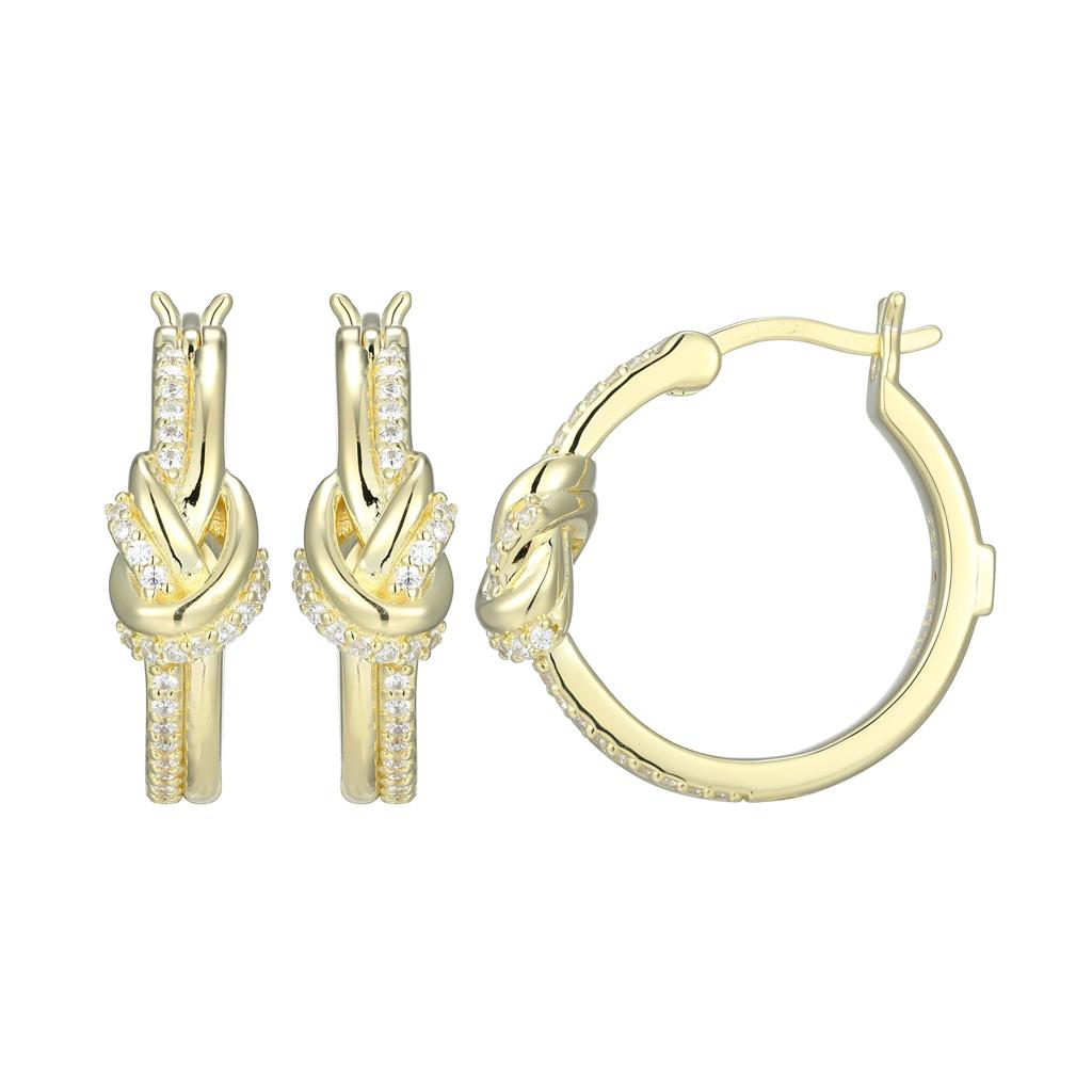 gold plated cubic zirconia hoop earrings reimagined: the Unity twist-knot hoops pair a radiant gold-plated finish with sparkling CZ for modern, refined shine. Versatile and polished, this contemporary pair from Hoppe Jewelers elevates everyday style and transitions seamlessly from day to night.